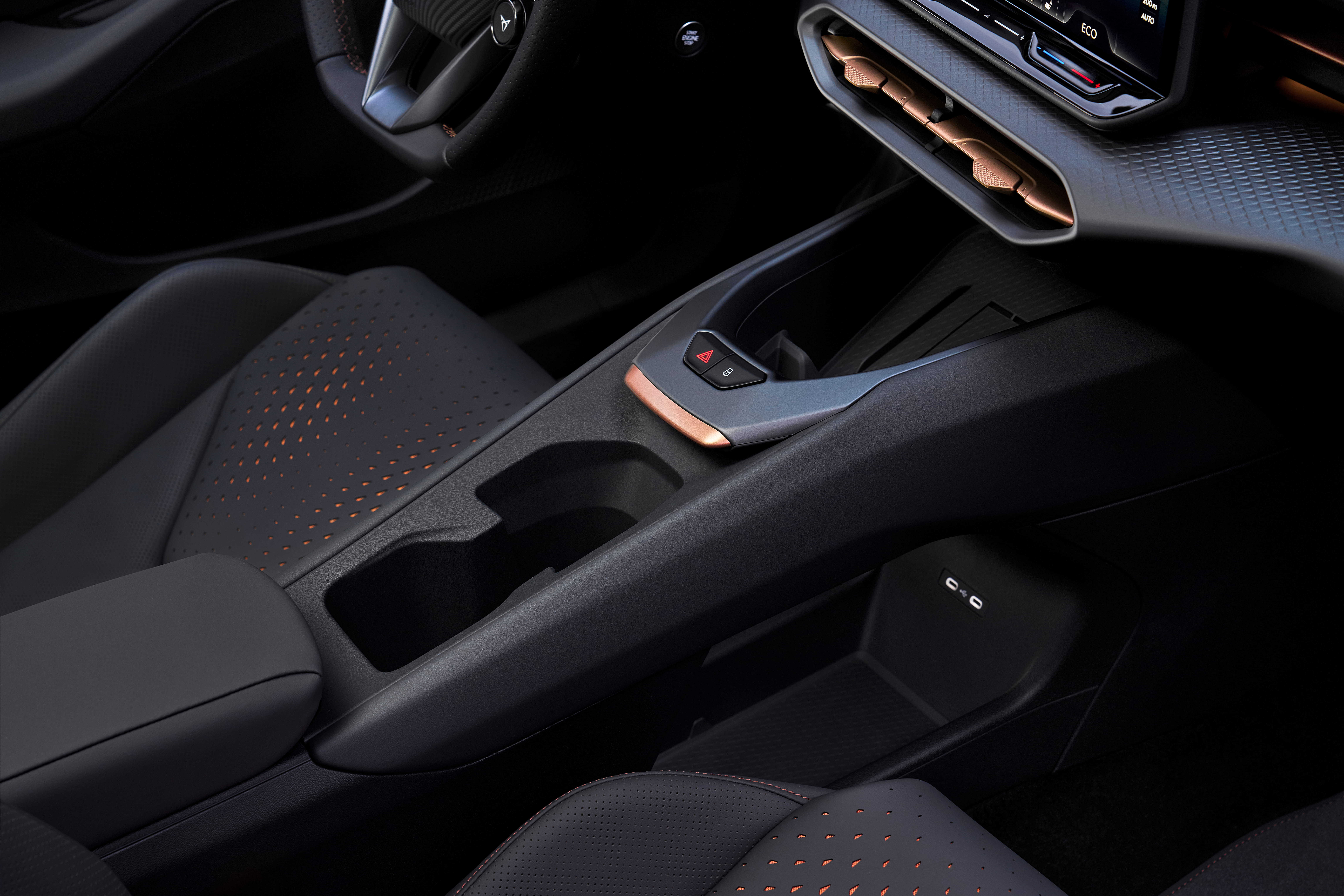 Sportlichkeit hält in mehrerlei Formen Einzug. Einerseits mit dem Lenkrad mit Bediensatelliten (Cupra-Modus und Fahrmodi) sowie den Sportsitzen. Dort gibt es gleich mehrere Optionen vom Basisgestühl bis hin zu überraschend kompromisslosen Vollschalensitzen, die man in so einem kleinen Auto nicht erwarten würde. Weiter aufgepeppt wird das Cockpit von einer animierten Lichtprojektion auf die Türtafeln, bei der verschiedene Designs wählbar sind.